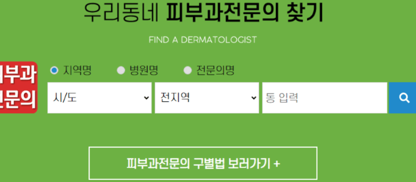 시/도, 지역, 동만 입력 하신다면 손 쉽게 피부과 전문의를 찾아보실 수 있습니다.