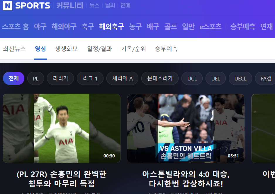 축구 이외에도 다양한 스포츠 종목들을 중계하고 있고 다시보기 기능 또한 있어 매우 유용하게 이용할 수 있는 사이트죠.