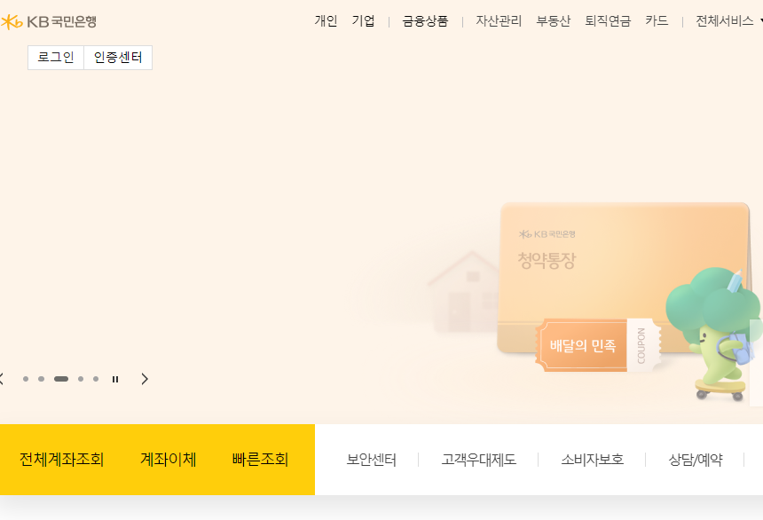 접속하시면 인증센터를 메뉴를 확인하실 수 있는데, 국민은행 인증서에 관련 된 모든 업무는 대부분 국민은행 인증센터에서 진행됩니다.