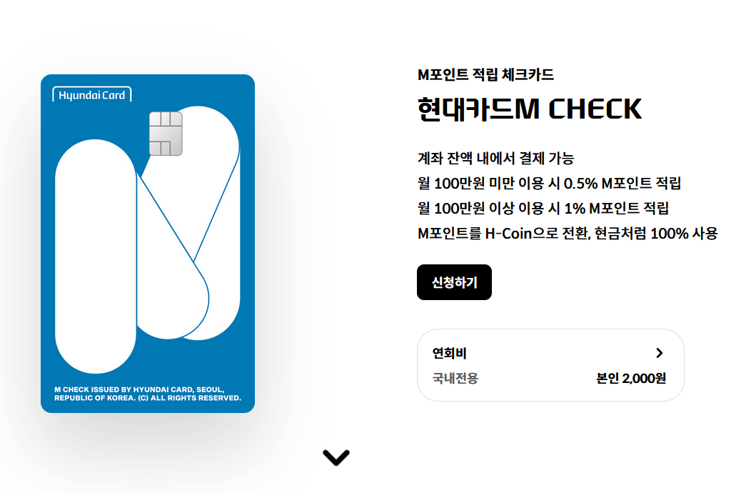 - 현대카드 M 체크카드 : M포인트 적립 체크카드