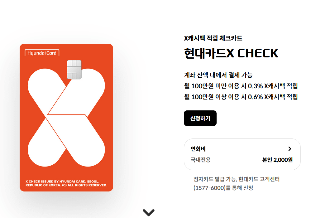 - 현대카드 X CHECH : X 캐시백 적립 체크카드
