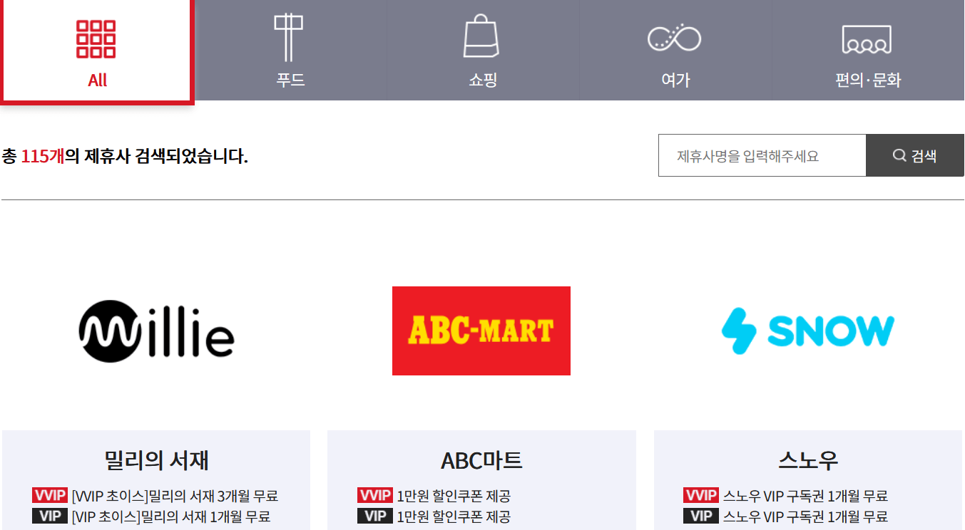 여러분들이 알만한 대형 브랜드와 제휴를 맺고 멤버십 회원들에게 혜택들을 제공하고 있답니다.