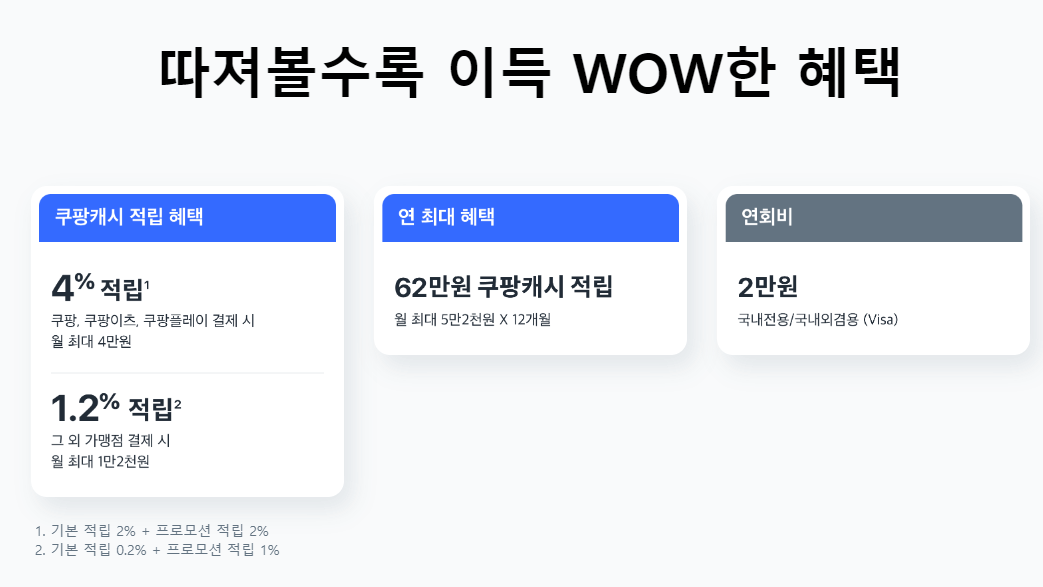 📌 쿠팡 와우카드의 혜택은 다양하게 있습니다