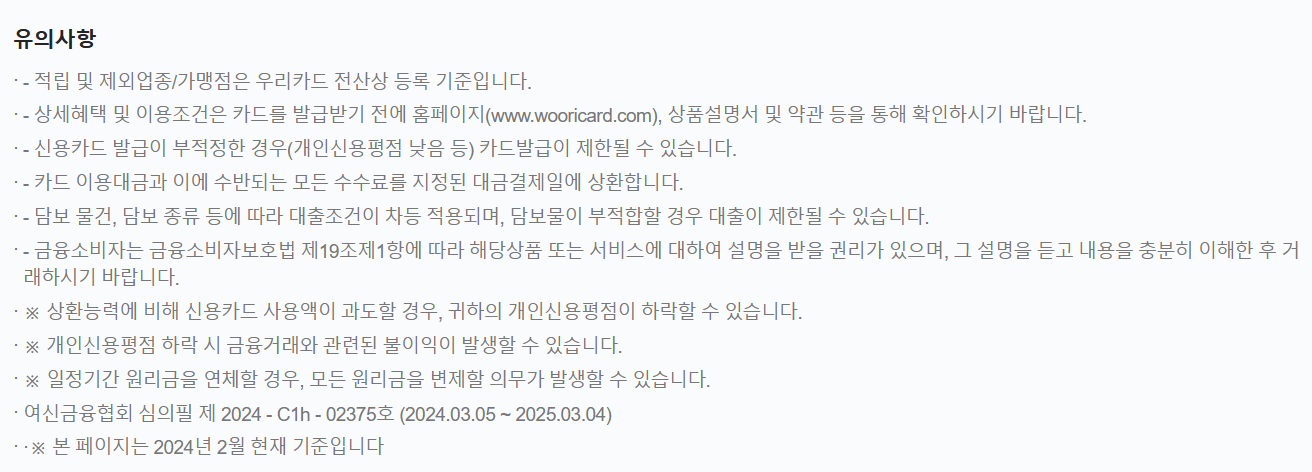 📌 유의사항 꼭 자세히 확인하고, (카드명)의 혜택을 완벽하게 누리세요!