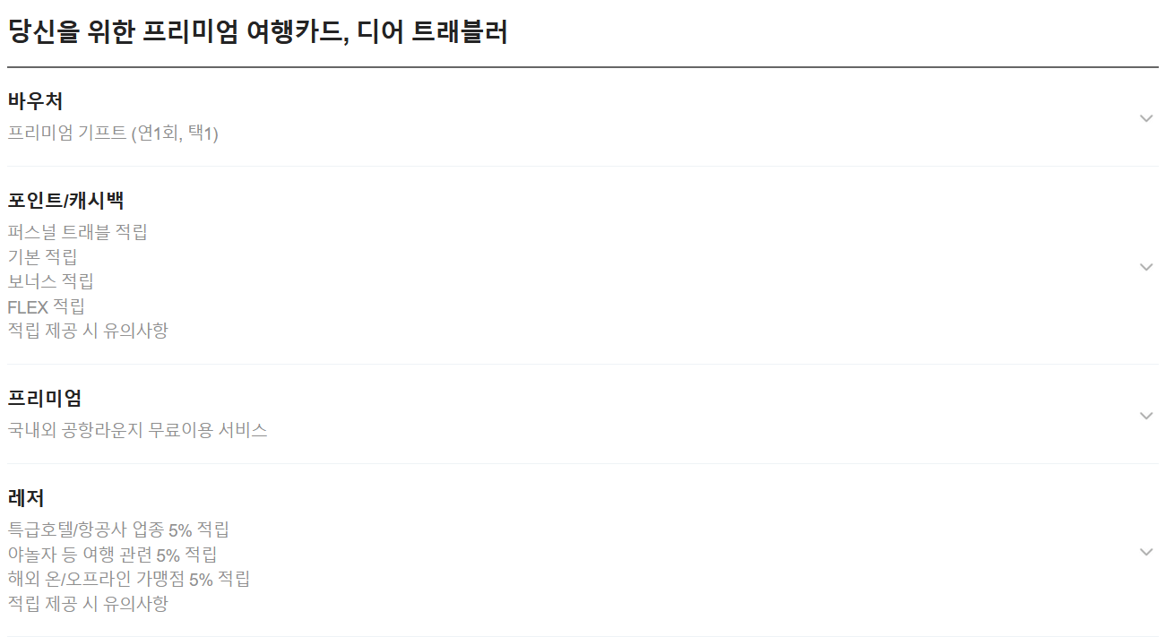 이 카드는 다양한 여행 관련 헤택을 제공하여 여행을 더 편리하고 저렴하게 만들어 줍니다.