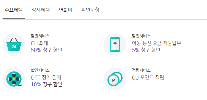 CU KB국민카드 의 주요 혜택 정보