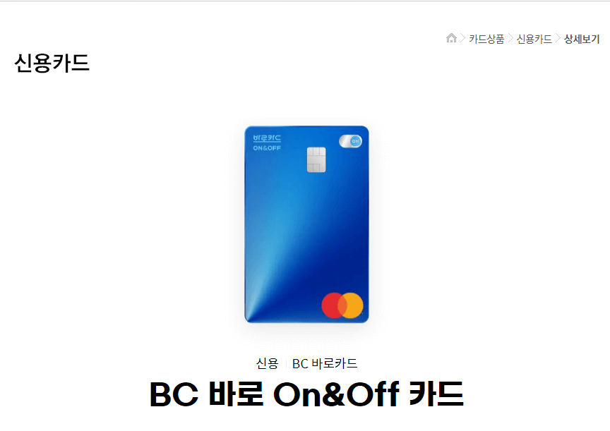 BC 바로 온앤오프 카드 정보