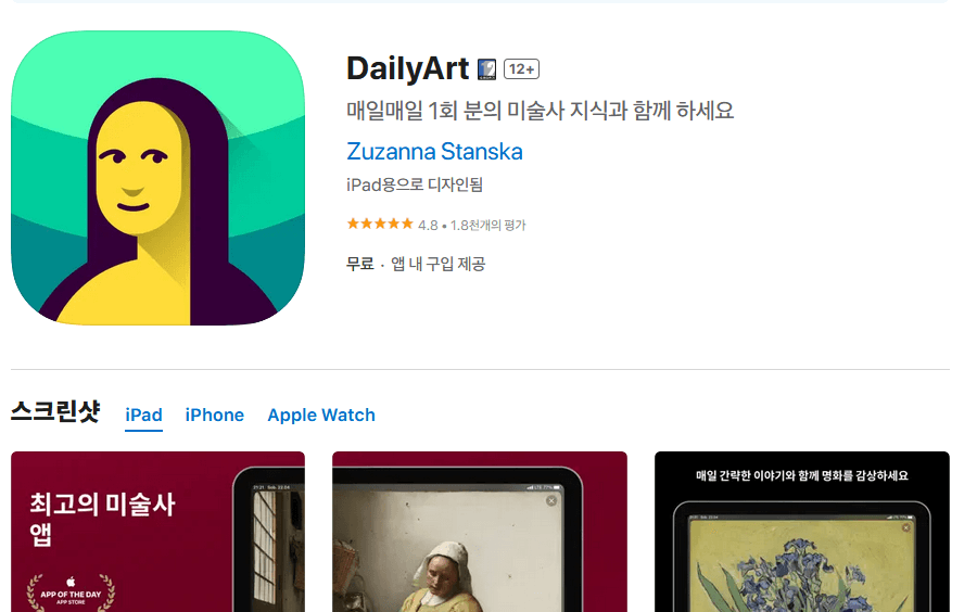 이 어플은 매일 아침 새로운 예술 작품과 함께 해당 작품에 대한 흥미로운 이야기를 제공하여 예술에 대한 이해와 감상을 돕습니다. 이 어플을 통해 예술 작품을 감상하는 즐거움을 느낄 수 있으며, 예술에 대한 지식을 넓힐 수 있습니다.