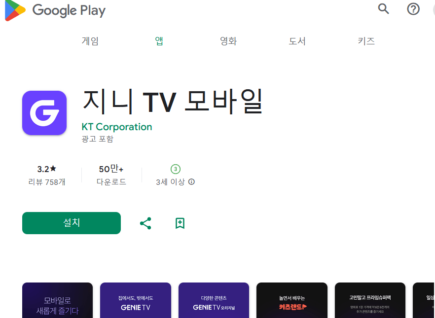 - 스마트폰에서 지니 TV 플레이를 실행합니다.