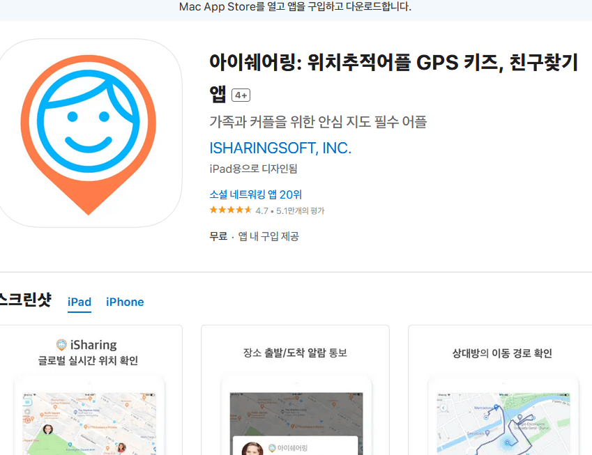 - 검색창에 iSharing을 입력하여 검색합니다.