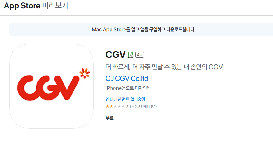 바쁘신 분들은 CGV 어플 다운로드 정보 먼저 찾아보시길 바랍니다