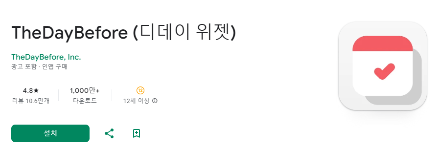 두 번째로 추천드릴 어플은 TheDayBefore입니다. 이 어플은 심플하면서도 세련된 디자인을 자랑하며, 디데이와 기념일을 한눈에 관리할 수 있는 기능이 있습니다.