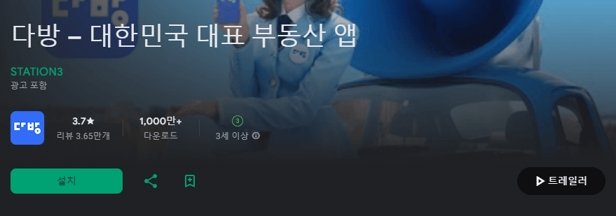 다방은 다양한 매물 필터링과 동영상 투어 기능을 통해 직접 방문하지 않아도 실제 매물 상태를 확인할 수 있어 시간과 비용을 아낄 수 있는 어플입니다.