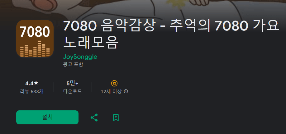 추억의 7080 어플은 5만 다운로드를 자랑하며, 리뷰는 638개가 있습니다