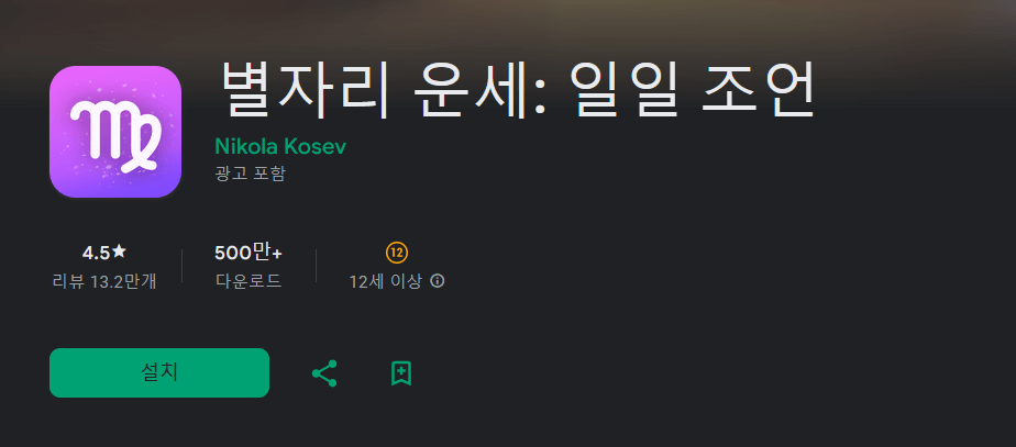 별자리 운세 HD - Horoscope 어플의 다운로드 횟수는 무려 100만이 넘으며 리뷰는 거의 3만개 가량 있습니다.