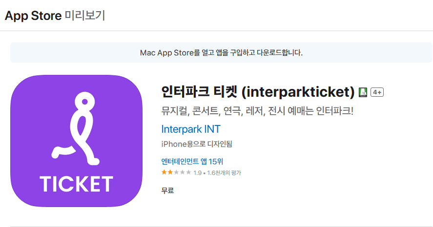 인터파크 티켓 어플 정보