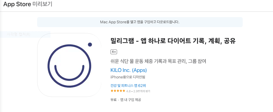 밀리그램 어플은 2021년 3월 18일에 출시한 어플로서 다운로드 횟수는 무려 10만회를 자랑하는 다이어트 어플입니다.