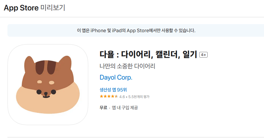 다욜 어플은 오직 아이폰 다이어리 어플로 개발이 되어 아쉽게도 안드로이드 에서는 사용을 할 수 없다고 합니다.