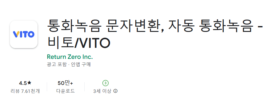 비토 어플은 통화 전용으로 개발이 되었는데요, 일반 음성녹음 문바변환 어플과는 다소 다르다고 합니다.