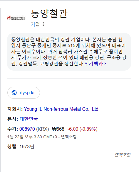 동양철관 기업에 관심이 있는 사람들은 실시간 속보를 알아보시면 도움이 되실겁니다.