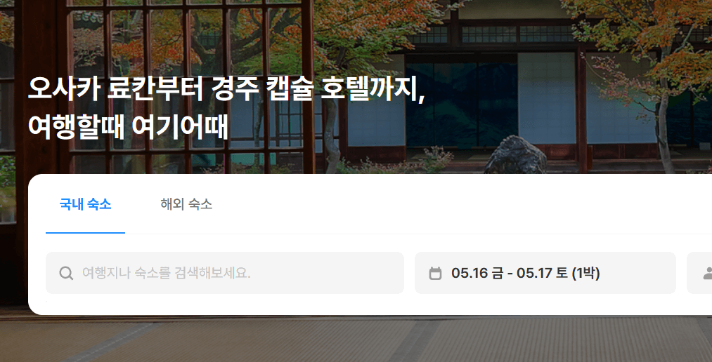 첫 번째로 해외 숙소 예약 사이트로 여기어때가 있습니다. 국내여행 하실때에도 여기어때를 이용하시는 분들이 많아요.
