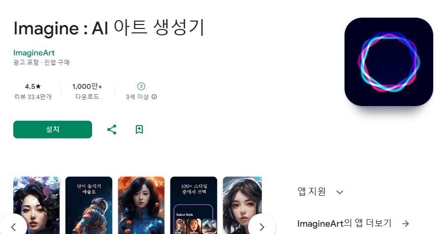 두 번째로 무료로 AI 그림 그려주는 어플로는 Play Groung 어플이 있습니다.